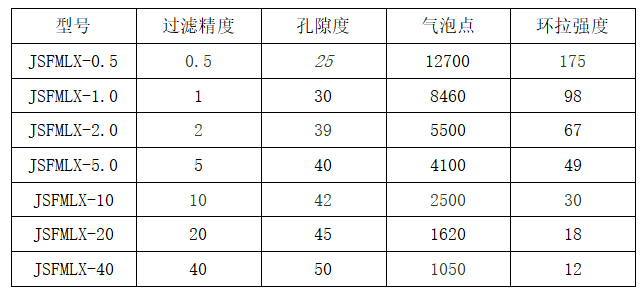 金屬粉末濾芯型號匯總表