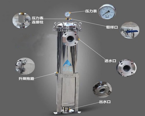 大流量多袋式過濾器是一種產水量非常大的過濾設備,最高可達30T/小時產水量。多袋式大流量袋式過濾器總體上是由四套搖錘式環首地腳螺栓將機蓋、不銹鋼罐體、搖臂、不銹鋼籃網、濾袋、支腳、法蘭接口等組成。
